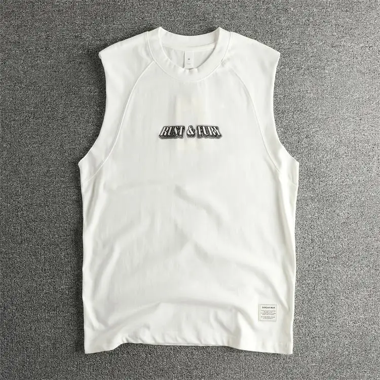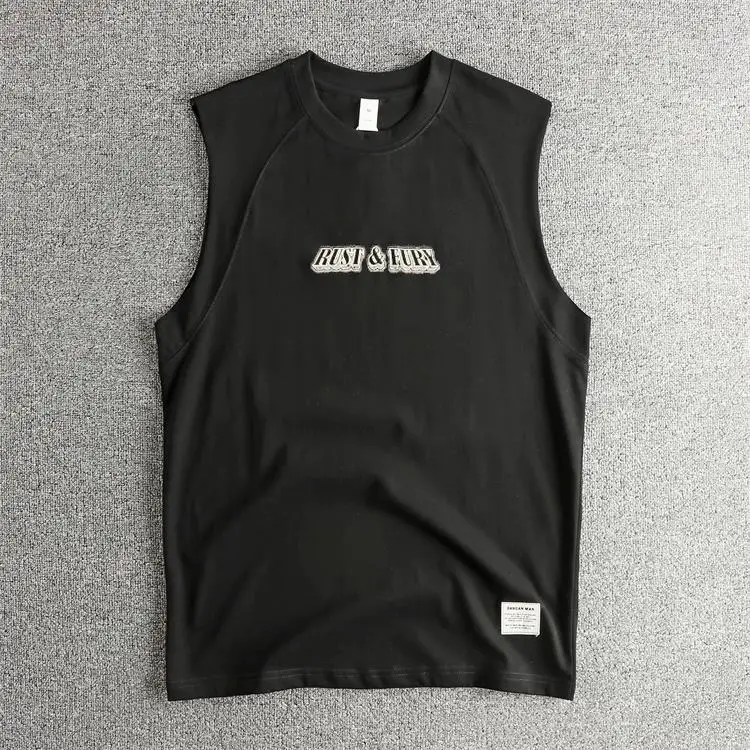 Summer New American Retro Sleeveless O-neck 3D Letter Printed T-shirt Men's Fashion 100% Cotton Basketball Sports Casual Vest