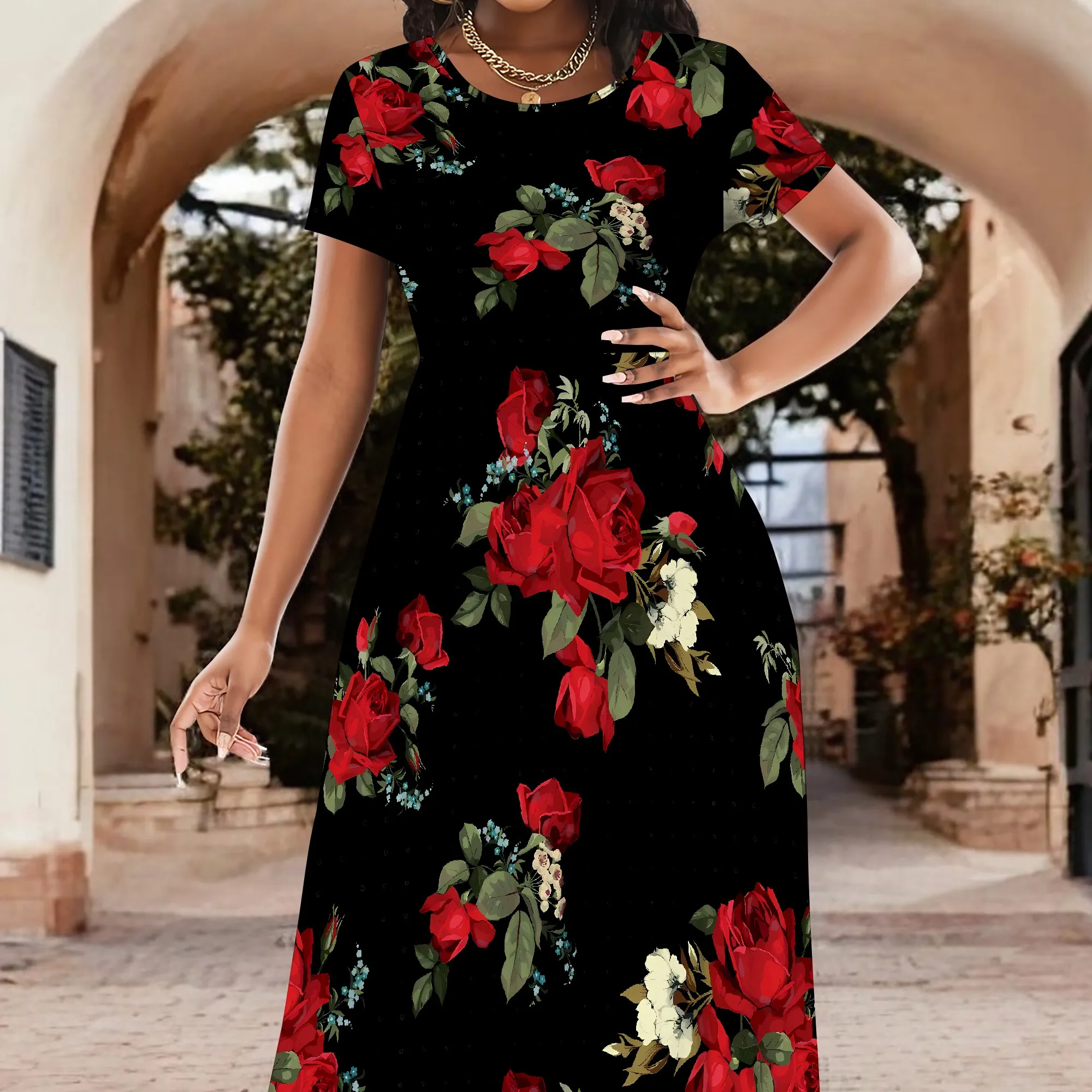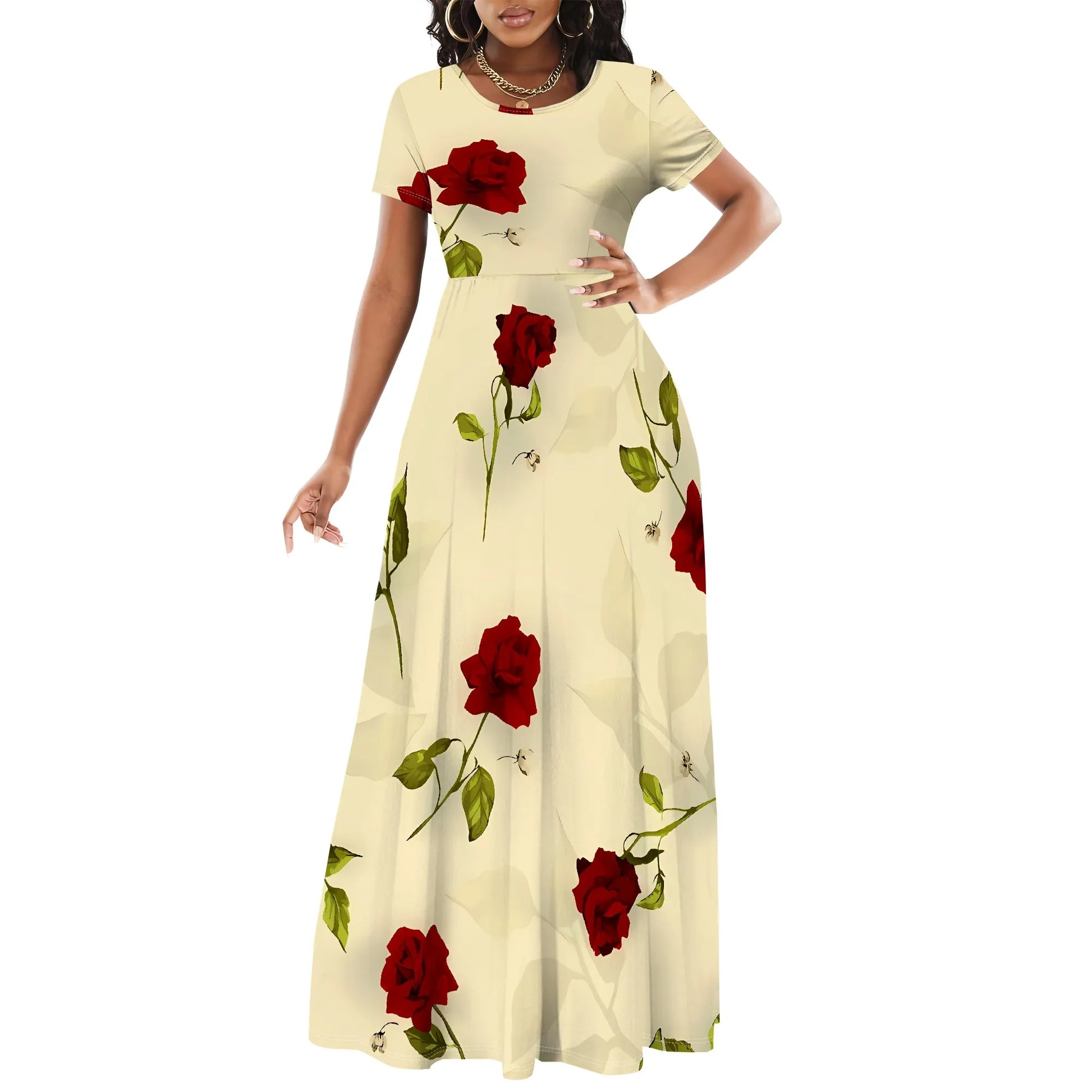 Summer Off Shoulder Floral Print Maxi Dress Elegant Short Sleeve Vacation Outfit