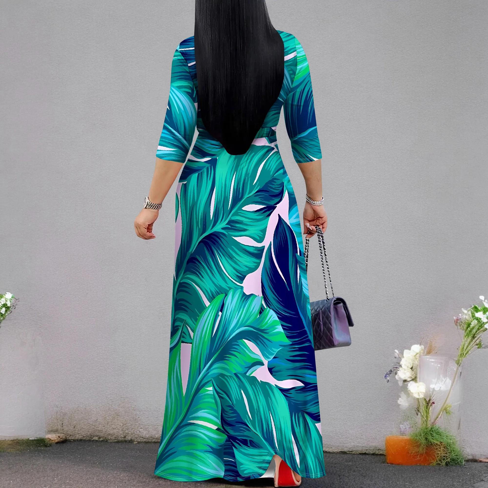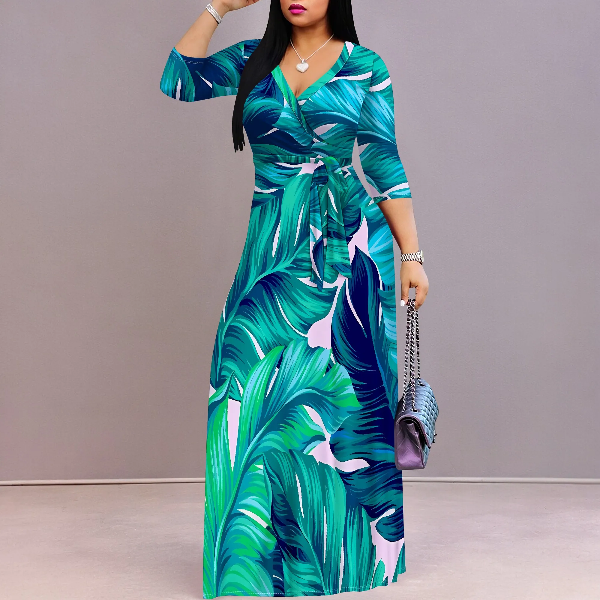Vacation V-Neck Wrap Dress - Adjustable Tie Waist Floral Midi Dress, Tropical Resort Wear for Women