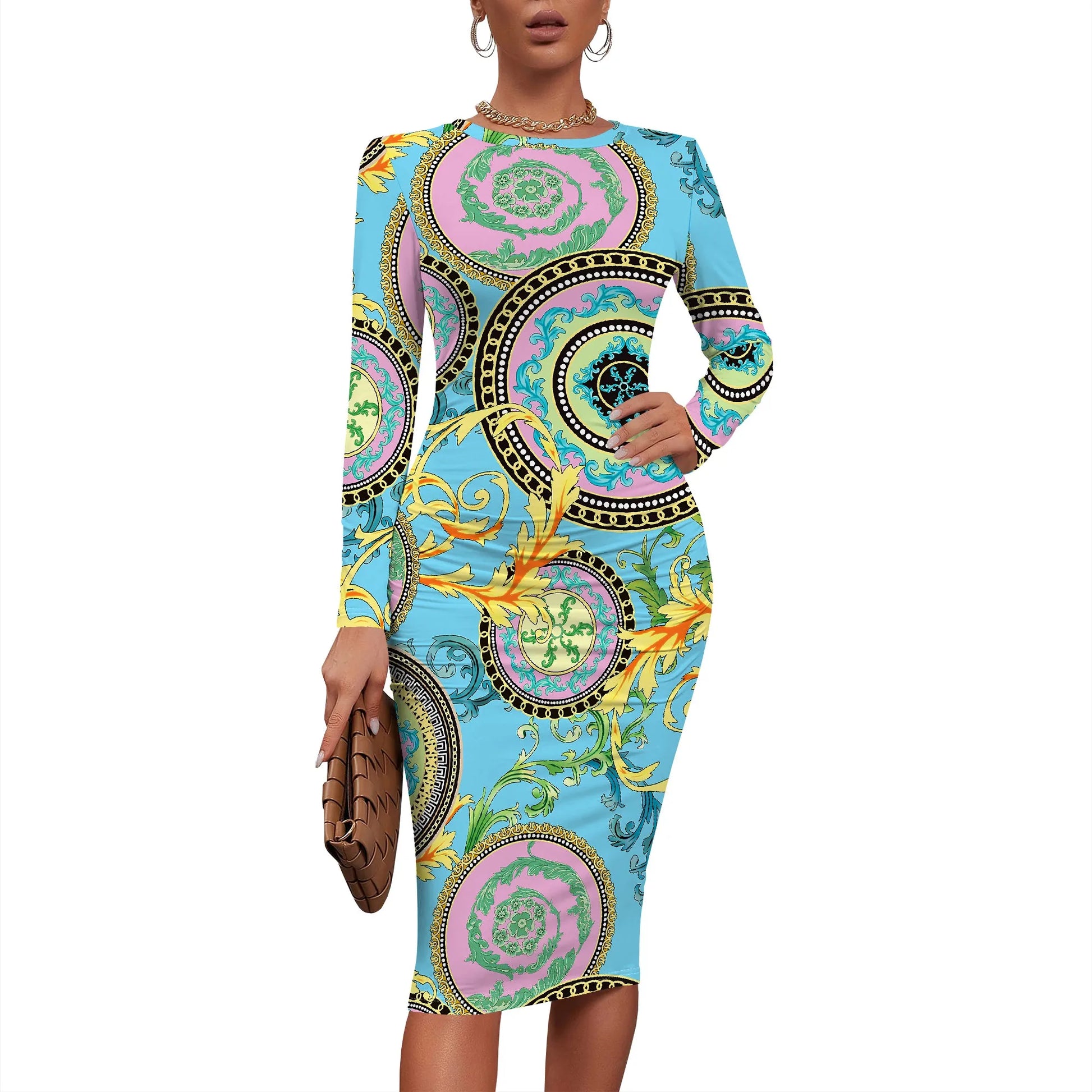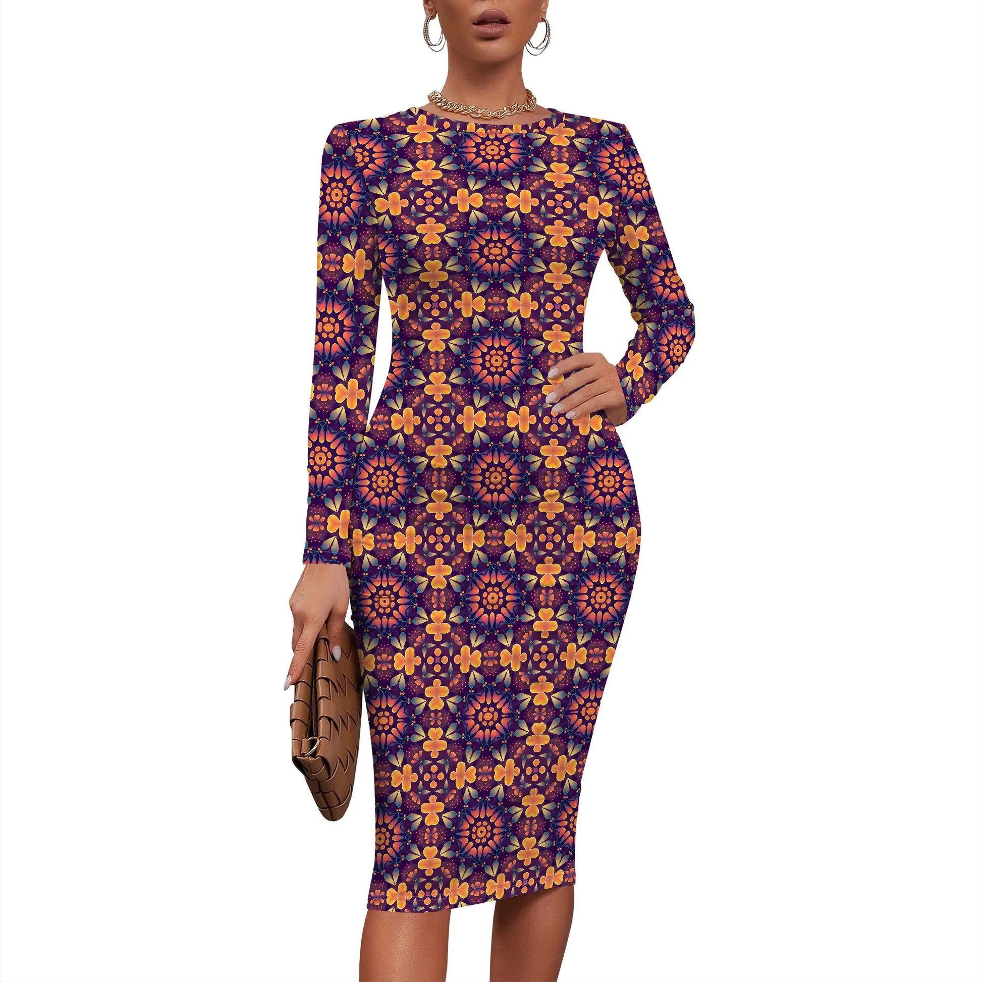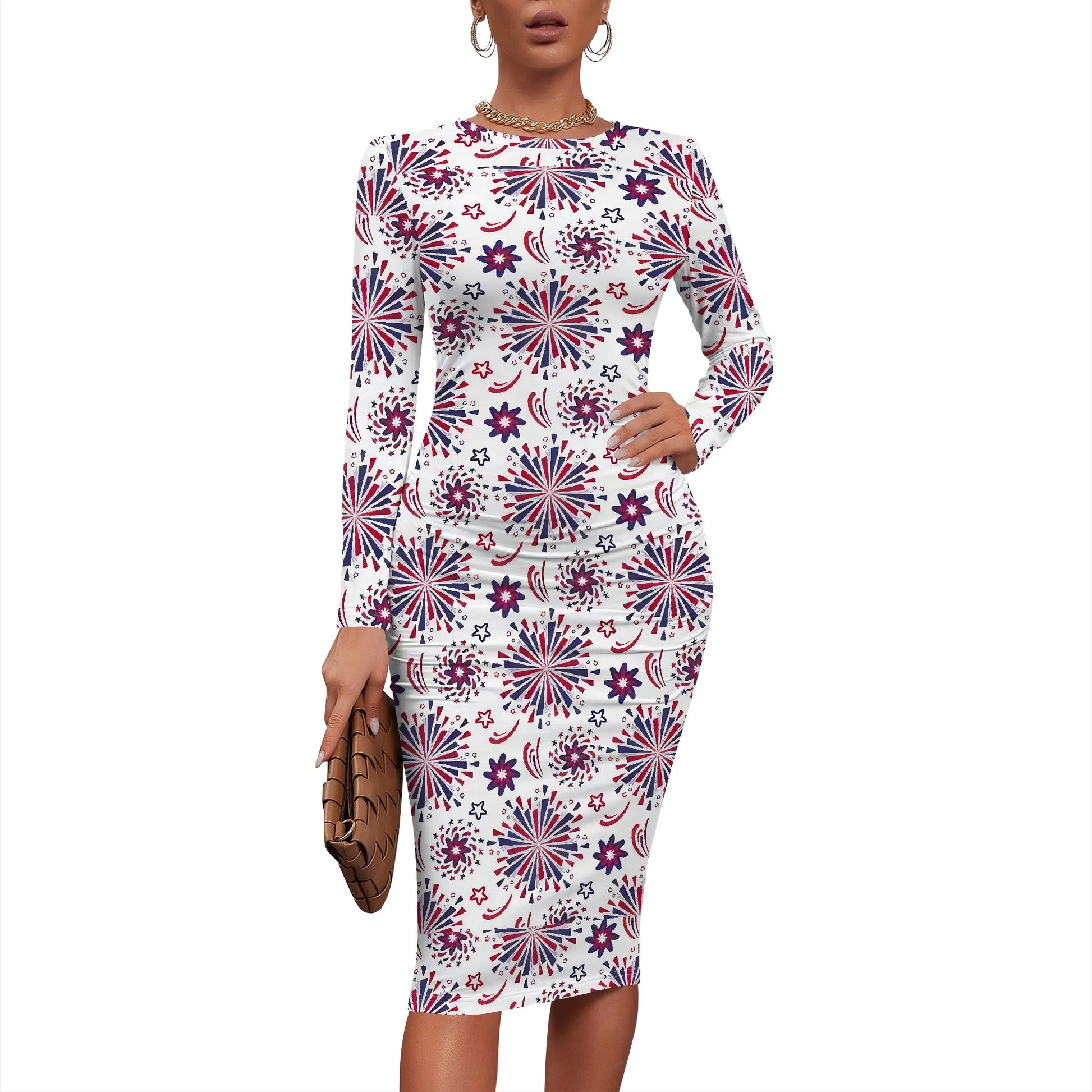 Women's 2025 Summer Dress Ruched Long Sleeve Crew Neck Midi Dress Elegant Bodycon Basic Casual Dresses