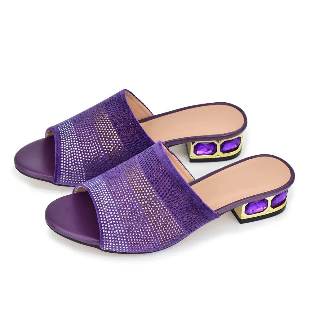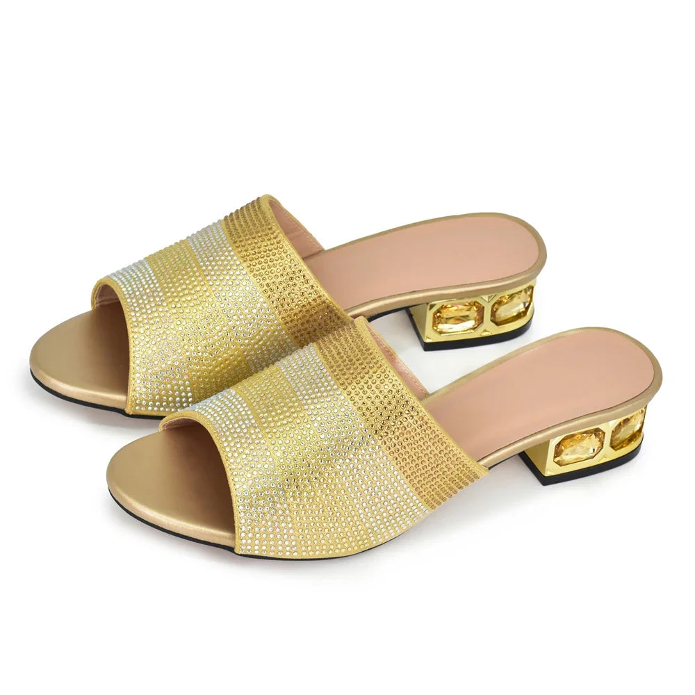 Women's Luxury Rhinestone Crystal Pumps 2024 New Fashion Slippers Sandals Party Low Heels Elegant Italian Women Shoes