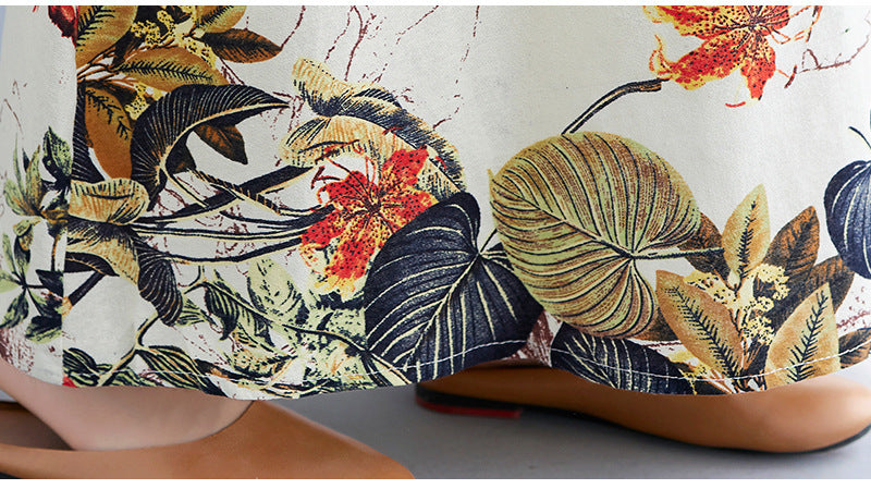 Women's Printed Cotton Linen Round Neck Sleeveless Dress