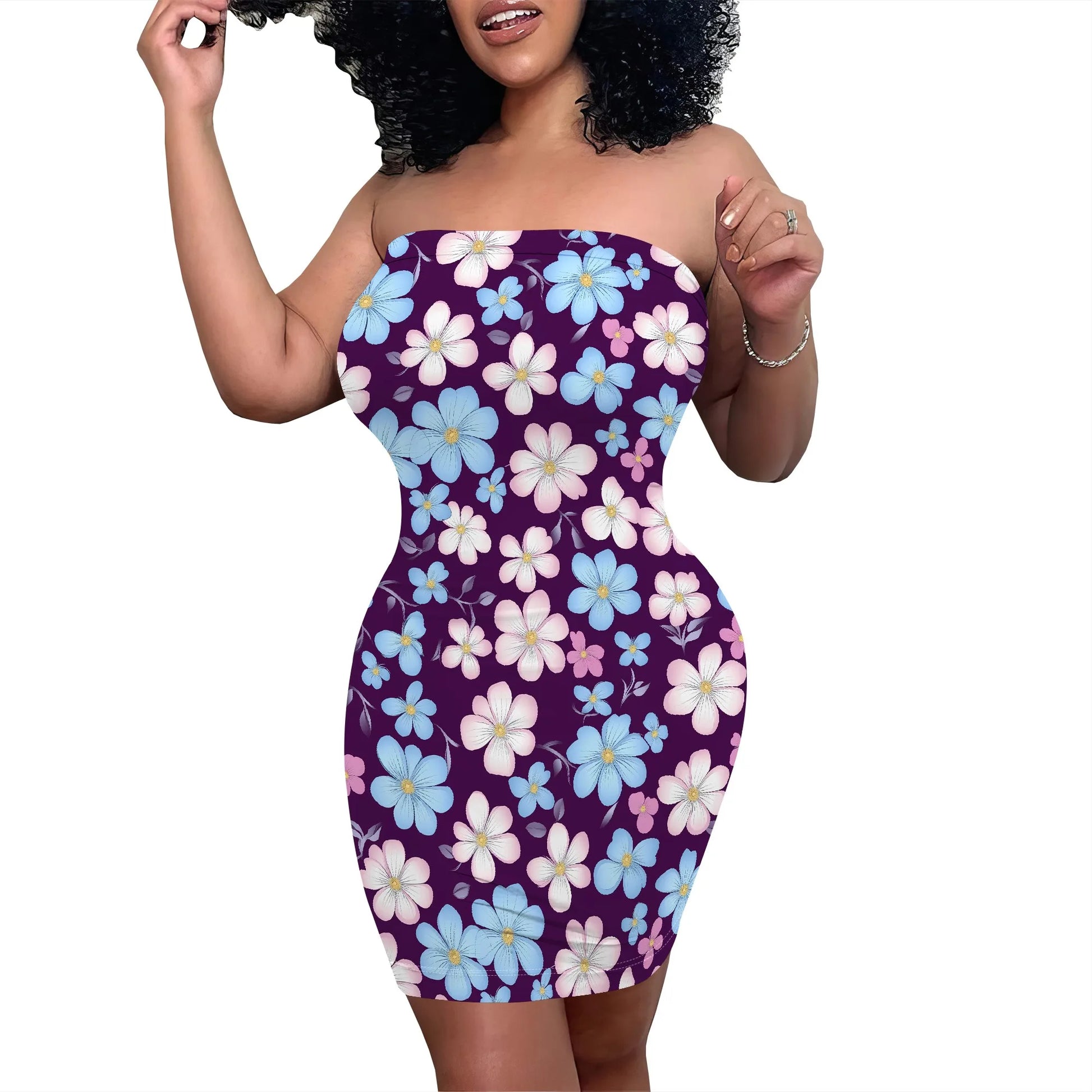 Women's Summer Casual Tube Top Sexy Strapless Bodycon Midi Drees Club Party Dresses